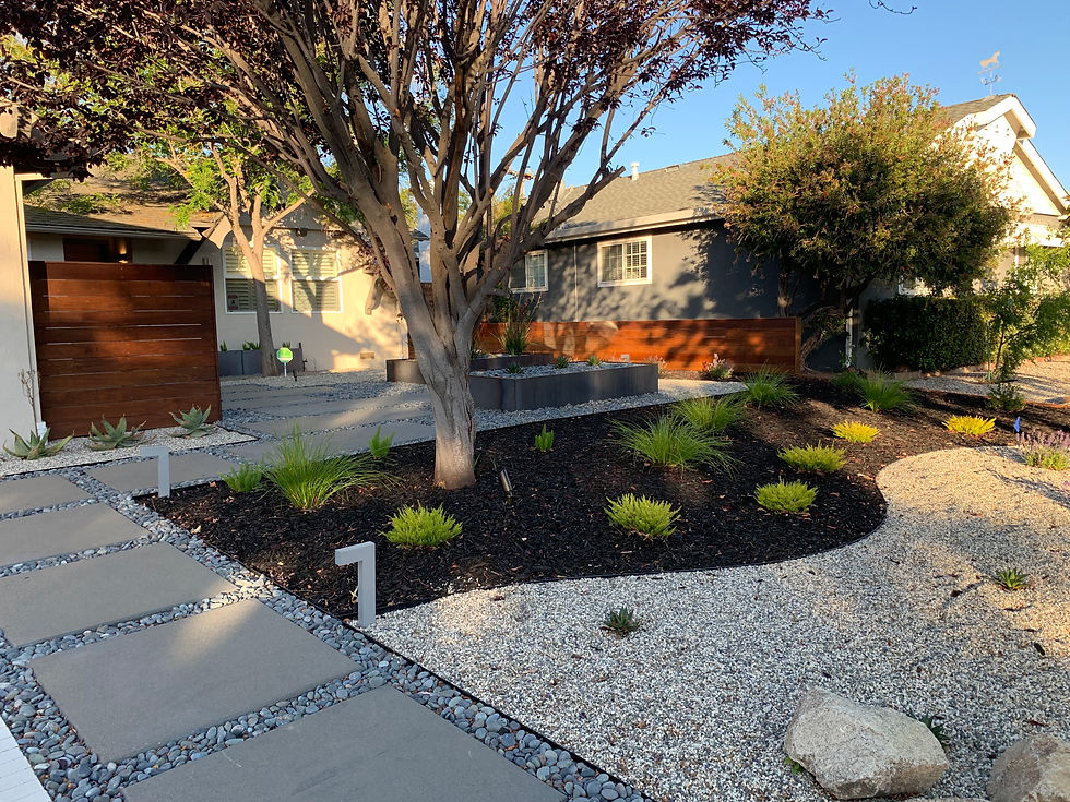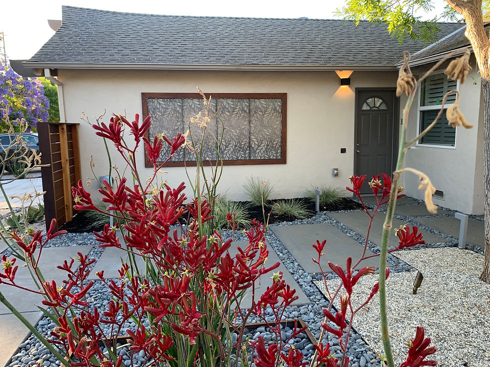 A great example of how a low-water, low-maintenance front yard can be beautiful and practical without a water-thirsty lawn.